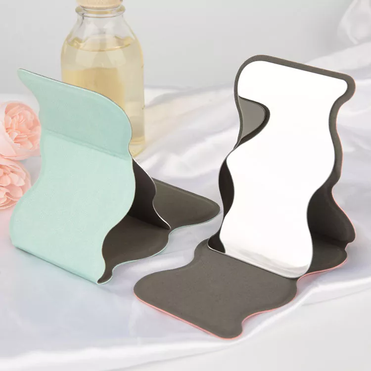 Benzersiz dalgalı katlanabilir cep aynası, şık kavisli silueti pratik işlevsellik ile birleştirir. Yumuşak PU deri kapak, yüksek çözünürlüklü cam yüzeyi koruyarak hassas makyaj ve cilt bakımı için net, distorsiyonsuz yansıma sağlar. Katlanabilir standı, eller serbest kullanıma imkan vererek seyahat, işe gidip gelme ve hareket halindeyken hızlı rötuşlar için idealdir.